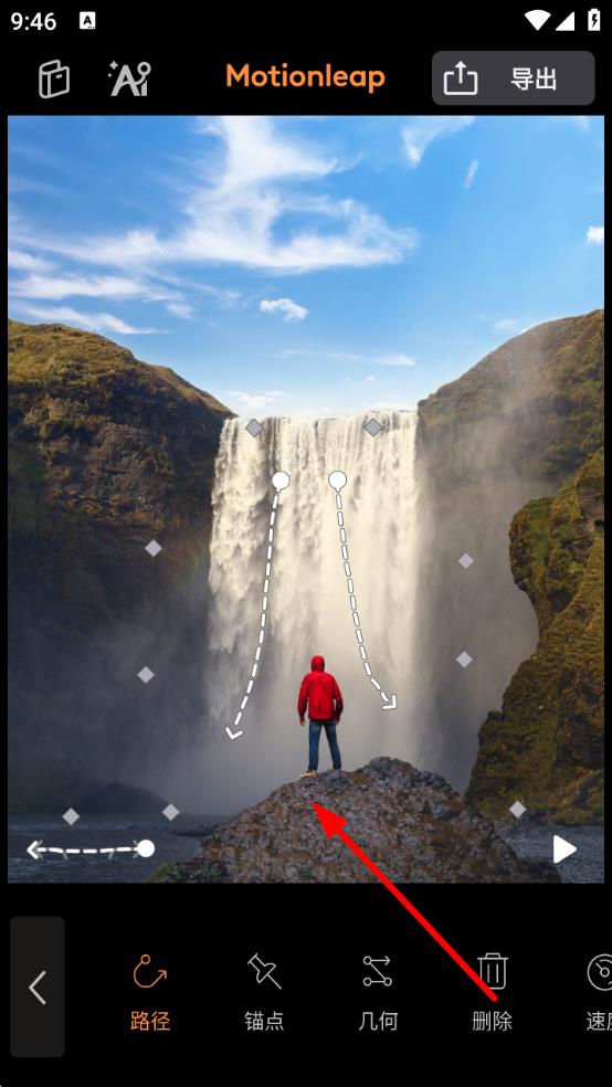 3、根據(jù)需求調(diào)整路徑的錨點(diǎn)、幾何形狀等參數(shù),設(shè)置完成后還可點(diǎn)擊播放按鈕預(yù)覽效果,滿意后點(diǎn)擊導(dǎo)出,選擇合適格式保存編輯后的視頻。