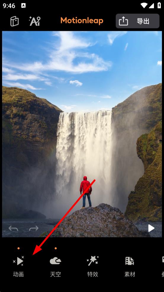 1、在Motionleap中導(dǎo)入照片后,點(diǎn)擊底部菜單欄里的動(dòng)畫選項(xiàng),進(jìn)入動(dòng)畫編輯界面。