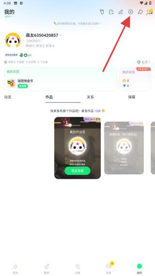 2、進入我的頁面內(nèi),點擊右上設置的圖標按鈕。
