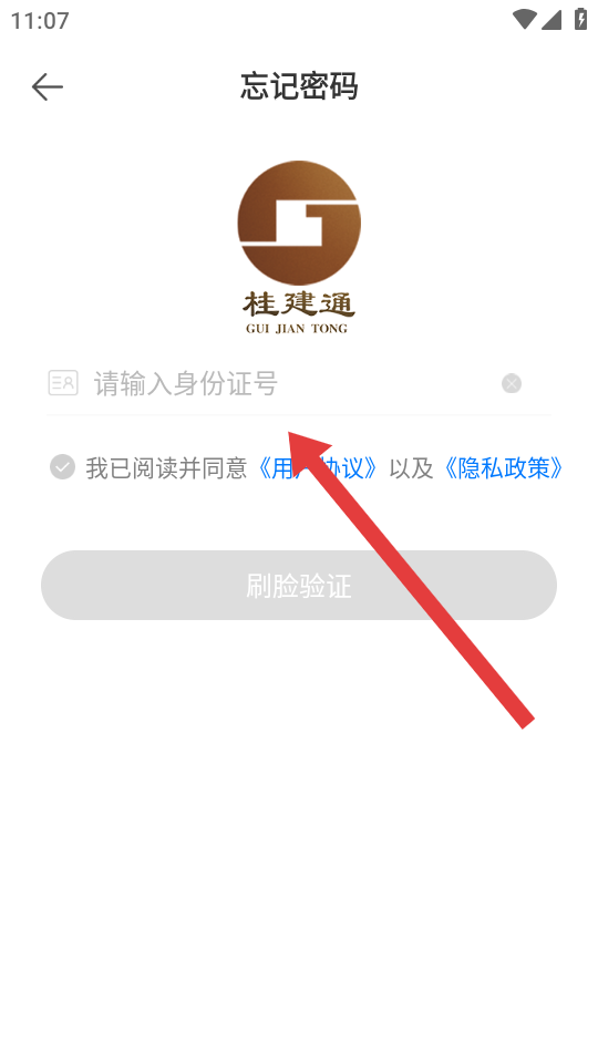 2、進(jìn)入忘記密碼的頁面,在輸入框填寫自己的身份證號,勾選協(xié)議后可以進(jìn)行刷臉驗(yàn)證操作。