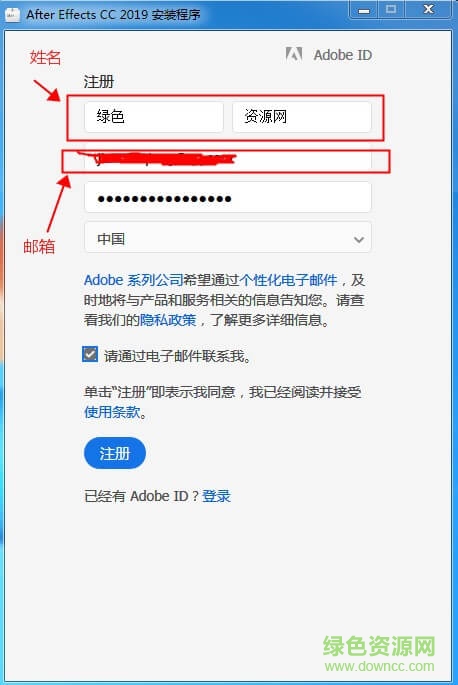 3.輸入自己注冊名字和郵箱(名字可以隨意輸入)