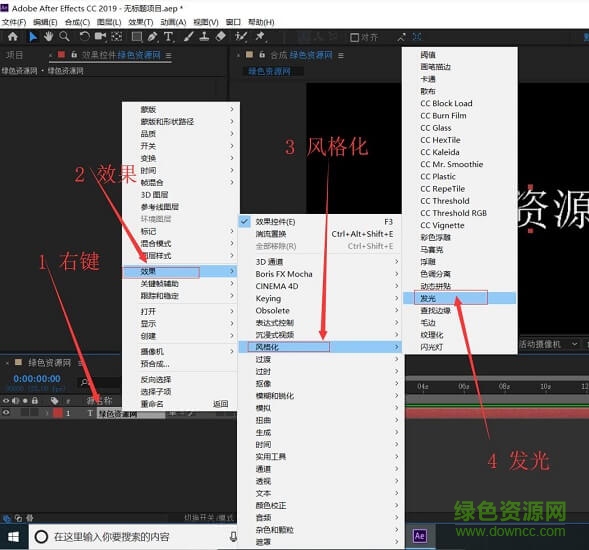 上面我們已經(jīng)完成了中文的安裝,這里來用ae做一個簡單的發(fā)光字體,也好測試一下自己的ae是否可以正常使用