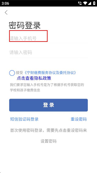3、點(diǎn)擊輸入框,輸入需要登錄的手機(jī)號(hào)。