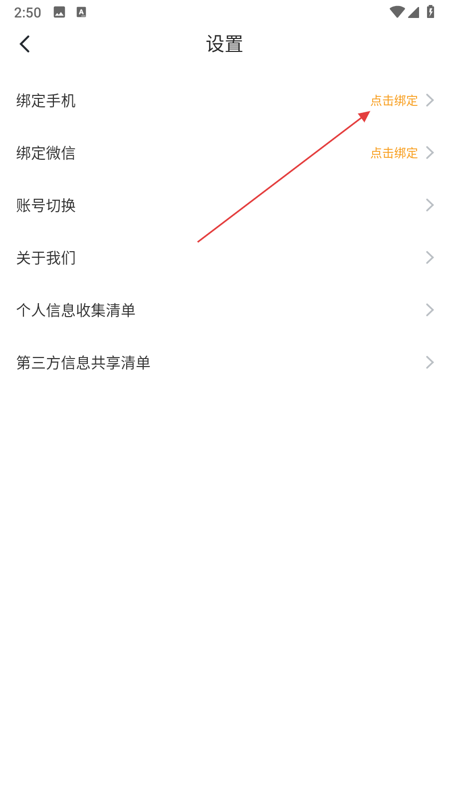 3、進(jìn)入設(shè)置界面后,點(diǎn)擊綁定手機(jī)選項(xiàng),進(jìn)入綁定頁面。