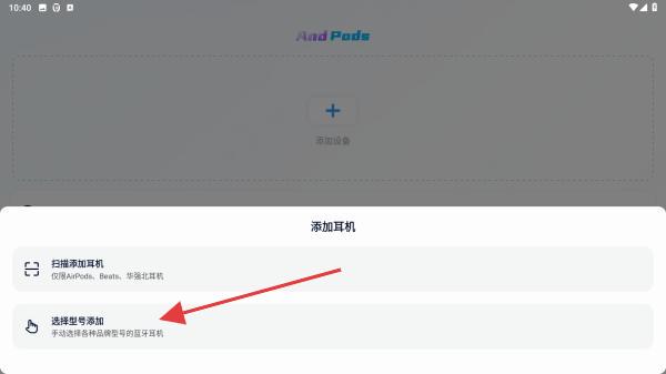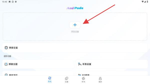 1、打開AndPods軟件,在首頁內(nèi)點(diǎn)擊添加設(shè)備的功能按鈕。