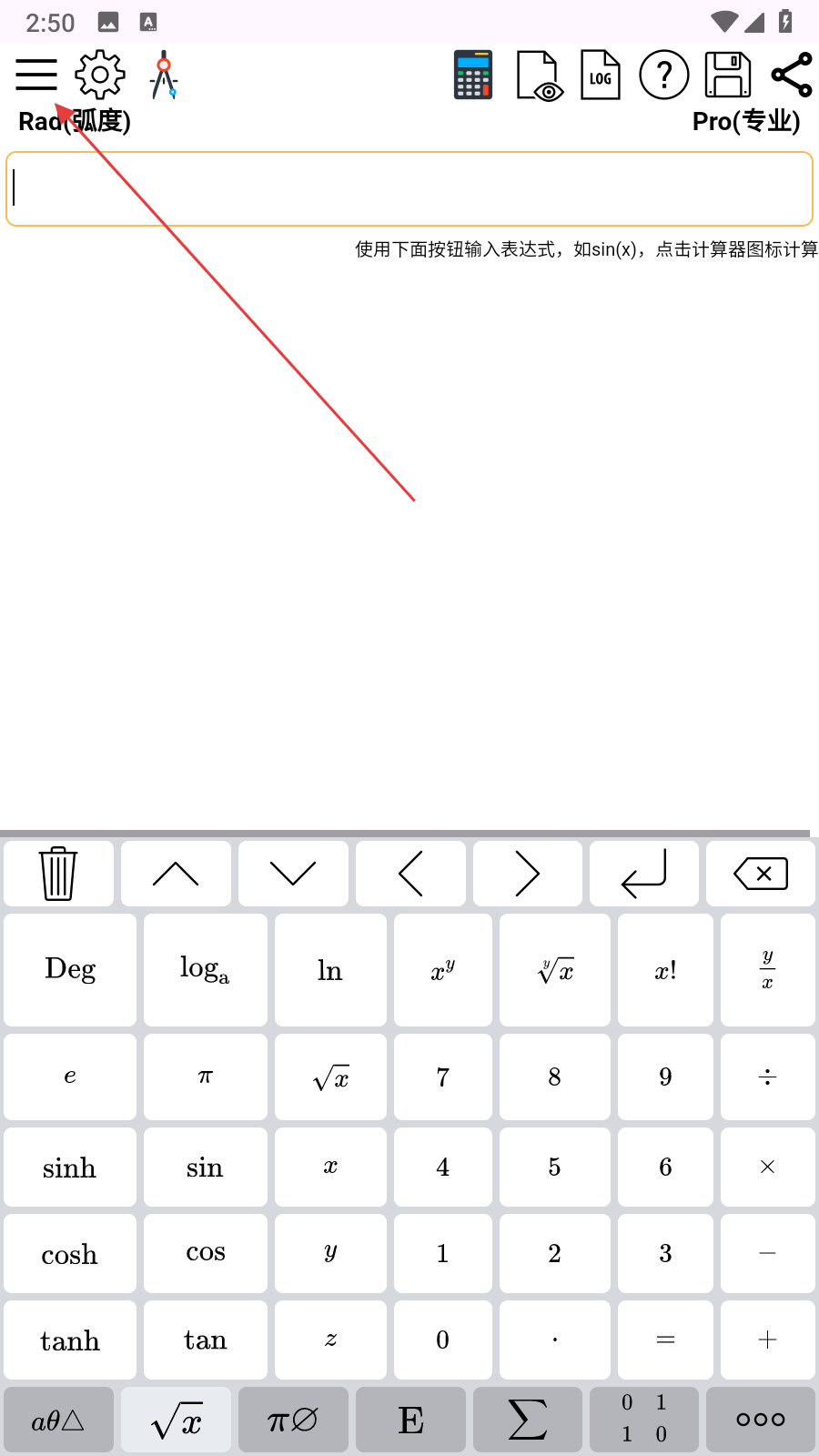 1、打開Mathfuns應(yīng)用,點擊界面左上角的三條橫線菜單按鈕,進入功能列表。