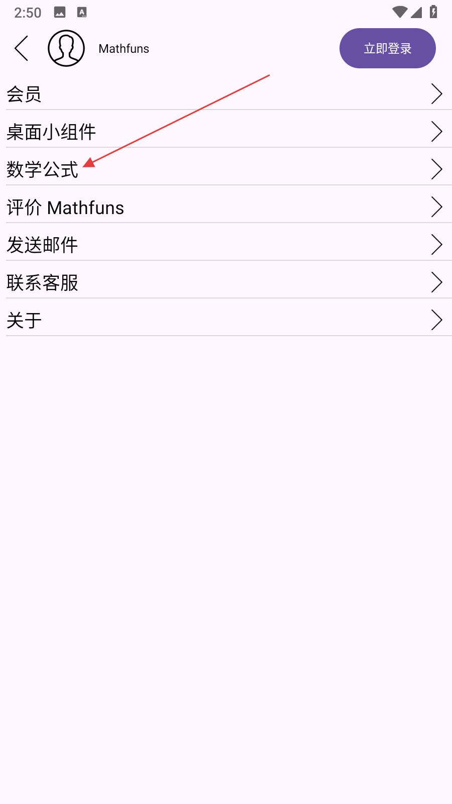 2、在功能列表中,找到并點擊數(shù)學(xué)公式選項,進入數(shù)學(xué)公式分類頁面。