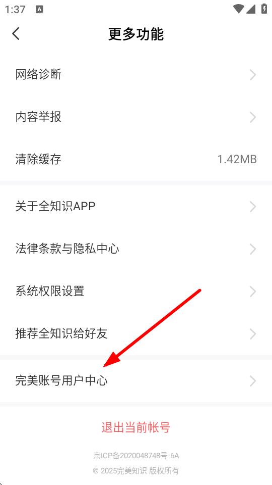2、在更多功能界面,點(diǎn)擊完美賬號(hào)用戶中心,進(jìn)入賬號(hào)管理頁面。