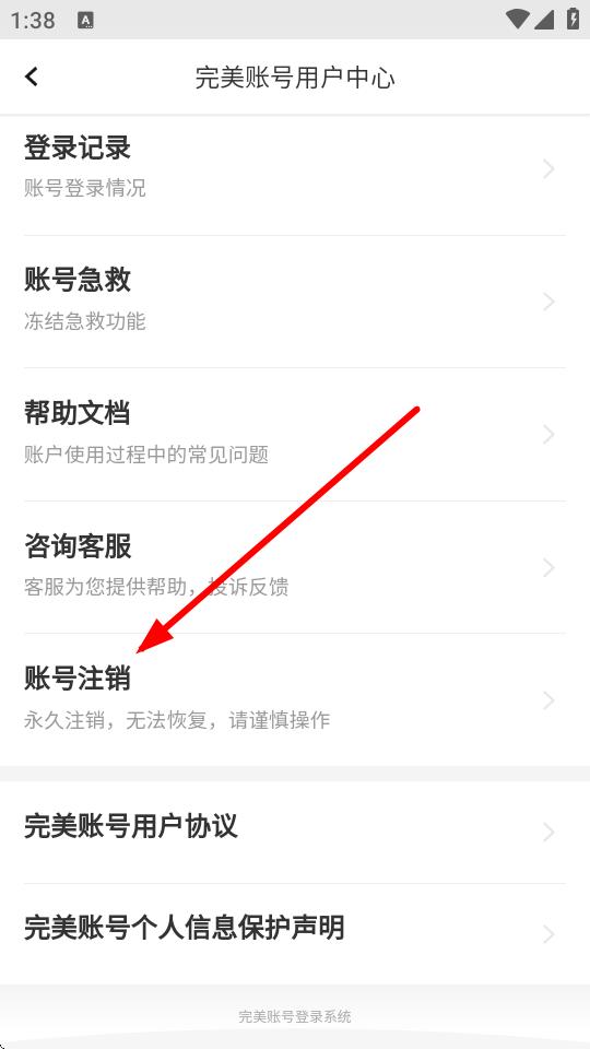 3、在完美賬號(hào)用戶中心,點(diǎn)擊賬號(hào)注銷,進(jìn)入風(fēng)險(xiǎn)提示頁面。