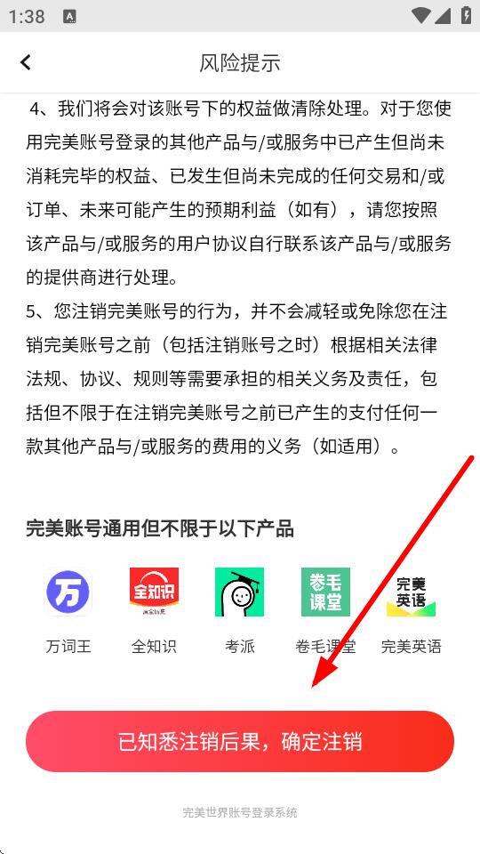 4、在風(fēng)險(xiǎn)提示頁面,點(diǎn)擊已知悉注銷后果,確定注銷完成注銷操作。