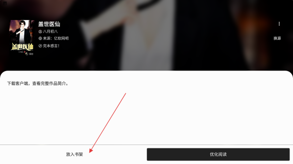 3.搜索結(jié)果后,在列表中仔細(xì)找到你要添加的那本小說(shuō),進(jìn)入書(shū)籍詳情頁(yè)面,能看到放入書(shū)架按鈕,之后返回書(shū)架界面,就能找到并隨時(shí)開(kāi)始閱讀剛剛添加的書(shū)本了。