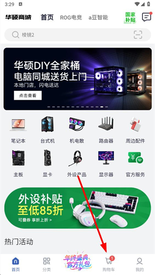 1、打開華碩商城APP,點(diǎn)擊底部購(gòu)物車圖標(biāo),進(jìn)入購(gòu)物車頁(yè)面。