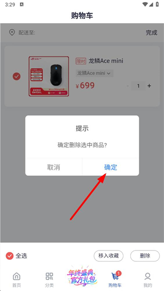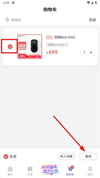 3、勾選要?jiǎng)h除的商品,若要全刪可勾選全選,再點(diǎn)擊右下角刪除。