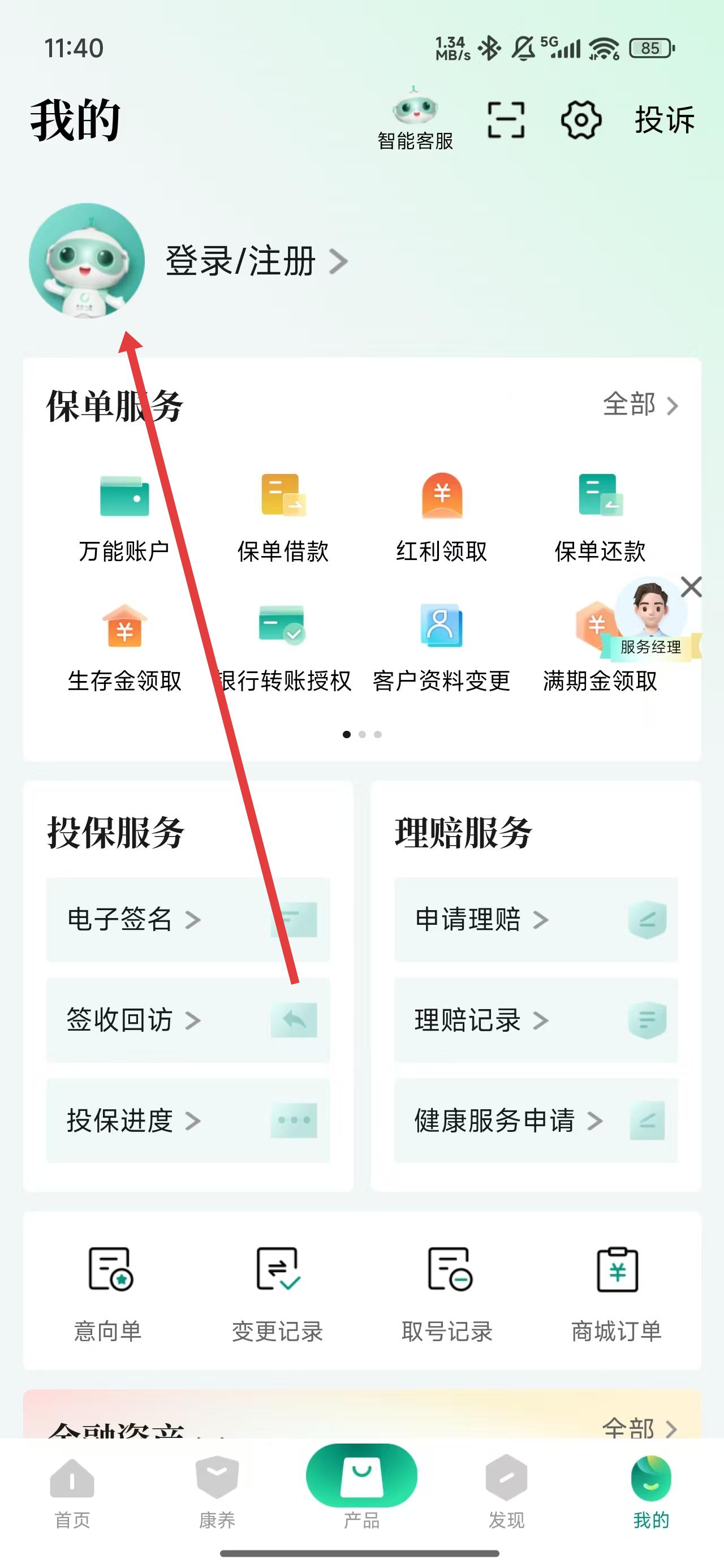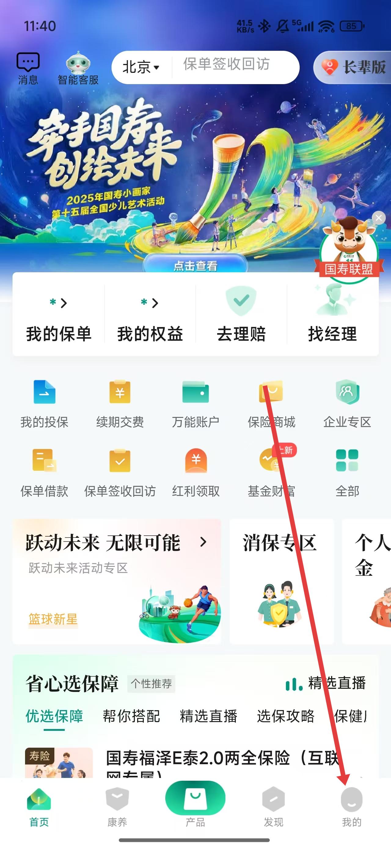 1、進(jìn)入到中國(guó)人壽壽險(xiǎn)app首頁(yè)中,點(diǎn)擊我的按鈕可進(jìn)入到我的主頁(yè)。