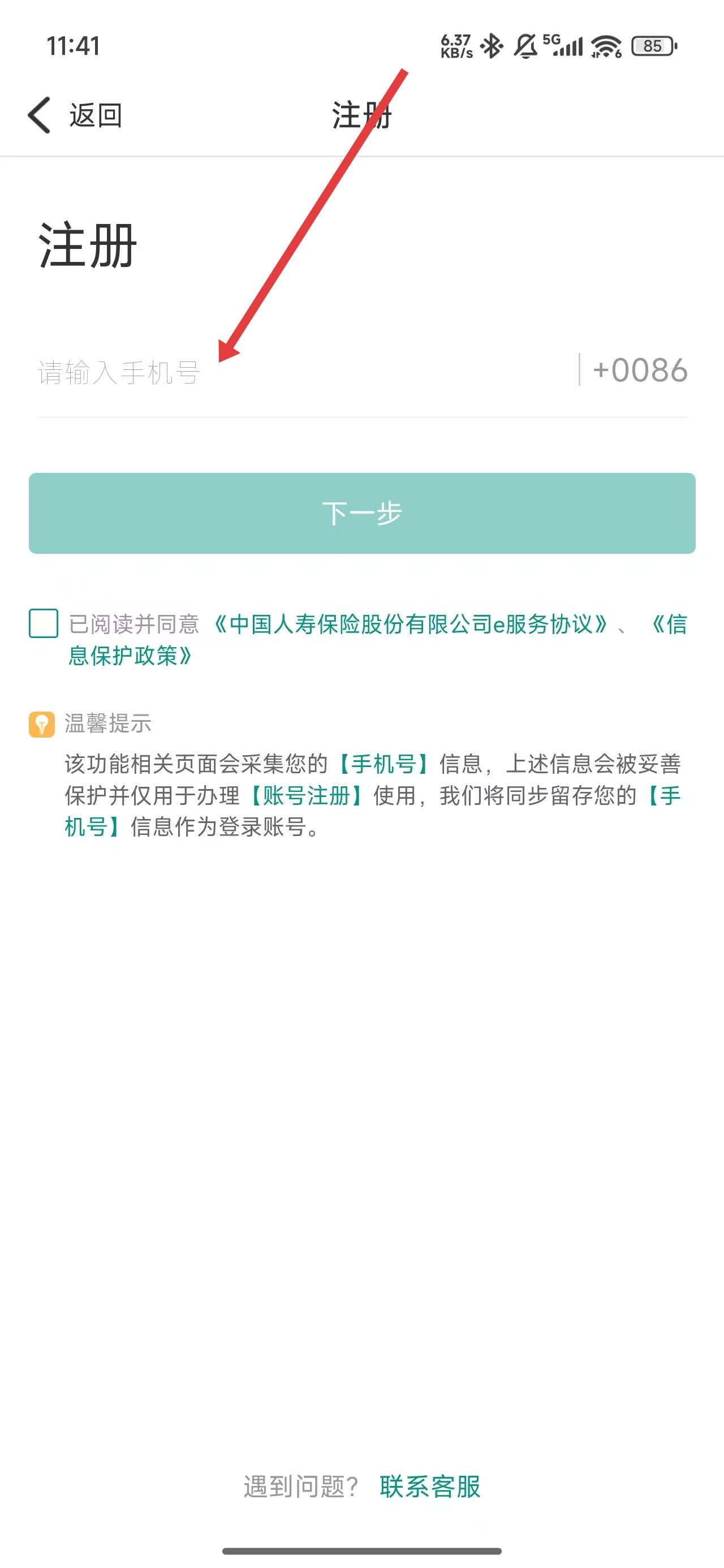 4、在注冊(cè)頁(yè)面中,點(diǎn)擊輸入框填寫(xiě)手機(jī)號(hào),以便后續(xù)獲取驗(yàn)證碼完成注冊(cè)操作。