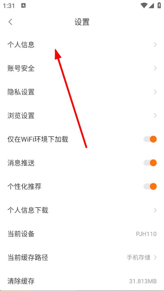 2、在設(shè)置頁面中,找到并點(diǎn)擊個人信息選項(xiàng),進(jìn)入個人資料界面。