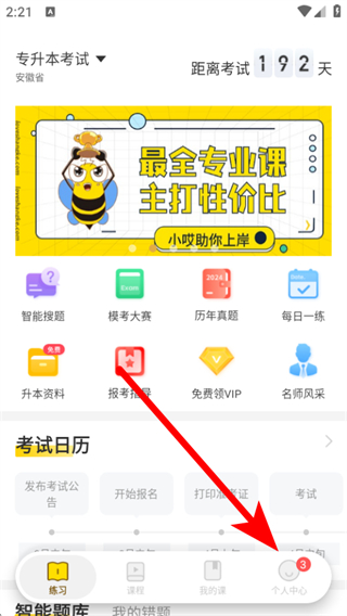 1、在哎上課專升本首頁,點(diǎn)擊個人中心,進(jìn)入個人中心頁面。