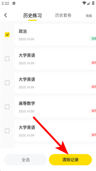 4、在頁面選擇要清除的記錄后點(diǎn)擊清除記錄,完成清除操作。
