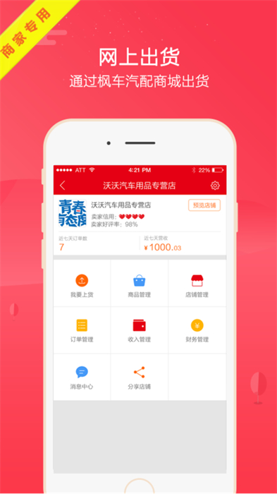 楓車商家app是專為楓車汽配平臺商家設(shè)計的一款管理軟件,集合批發(fā)、零售、店鋪管理、財務(wù)管理等功能為一體,用戶界面簡潔友好,使用簡單各項數(shù)據(jù)詳細(xì)顯示,歡迎來綠色資源網(wǎng)下載!