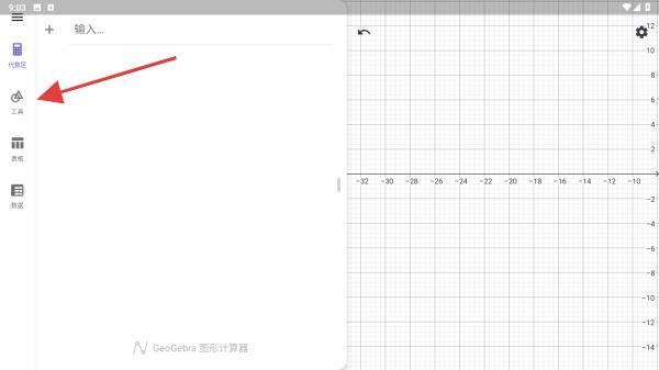 1、打開geogebra圖形計(jì)算器APP,在首頁(yè)內(nèi)點(diǎn)擊左側(cè)工具的圖標(biāo)。