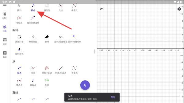 2、進(jìn)入工具列表內(nèi),找到描點(diǎn)的功能按鈕并點(diǎn)擊。