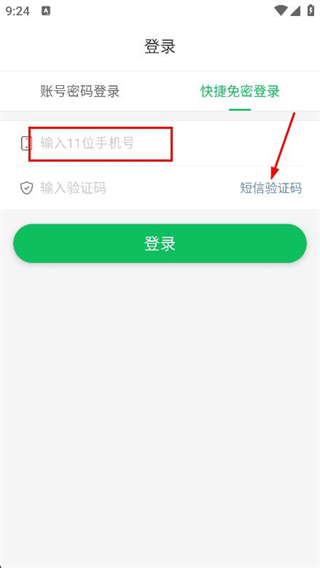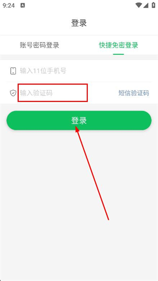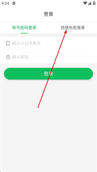 1、打開全效app,在登錄頁面中選擇快捷免密登錄選項。