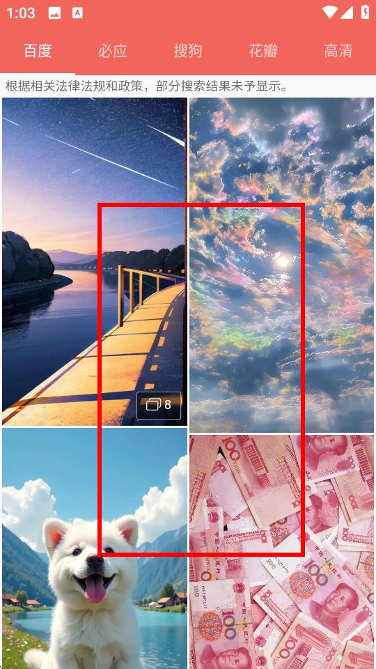 2、在搜索結(jié)果頁面中,瀏覽展示的各類壁紙,點擊你想要查看的壁紙圖片。