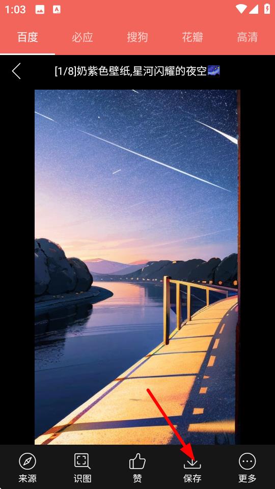 4、點擊壁紙詳情頁面下方的保存按鈕,即可將該手機壁紙保存到手機本地相冊。