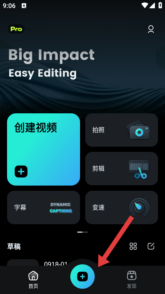 1、打開萬興喵影APP,點擊底部中間的加號按鈕,進入素材選擇界面。