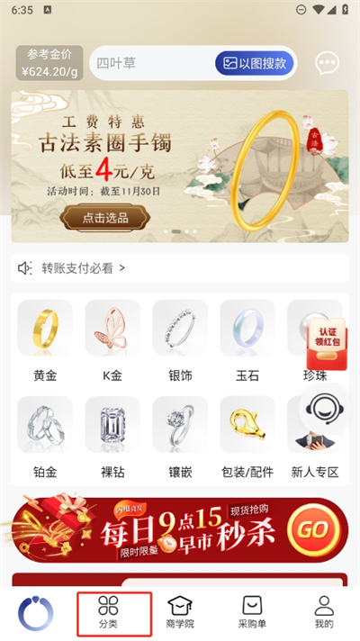1、進(jìn)入軟件后為了能夠找尋更多商品,可以在下方分類中找尋所有的商品;