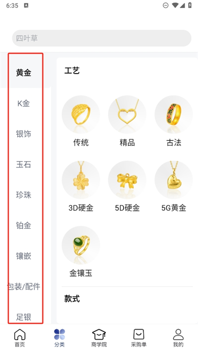 2、進(jìn)入分類中可以看到在平臺(tái)中售賣的各種商品分類,各種商品都會(huì)進(jìn)行詳細(xì)的分類管理;