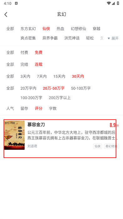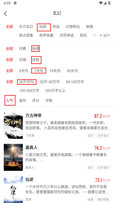 3、篩選完畢之后,可以進(jìn)行更詳細(xì)信息的篩選,以順利的找到自己想要看的小說;