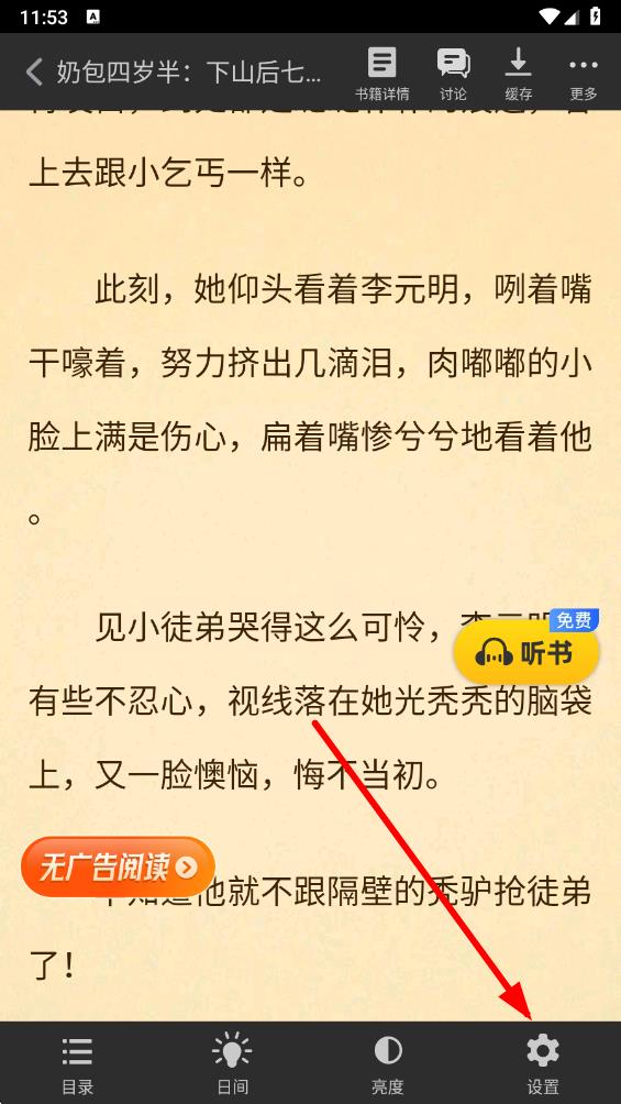 2、在閱讀界面中,點(diǎn)擊屏幕下方的設(shè)置圖標(biāo),進(jìn)入閱讀設(shè)置頁面。