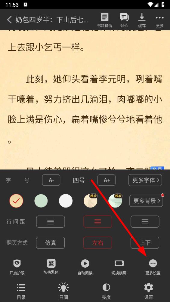 3、在閱讀設(shè)置頁面中,點(diǎn)擊更多設(shè)置選項(xiàng),進(jìn)入更多設(shè)置界面。