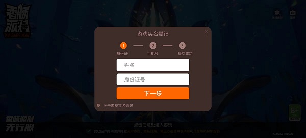 5、由于小編是第一次登錄游戲,所以進(jìn)入了實(shí)名登記頁(yè)面,實(shí)名登記完成之后還需要綁定手機(jī)號(hào),要求驗(yàn)證碼;