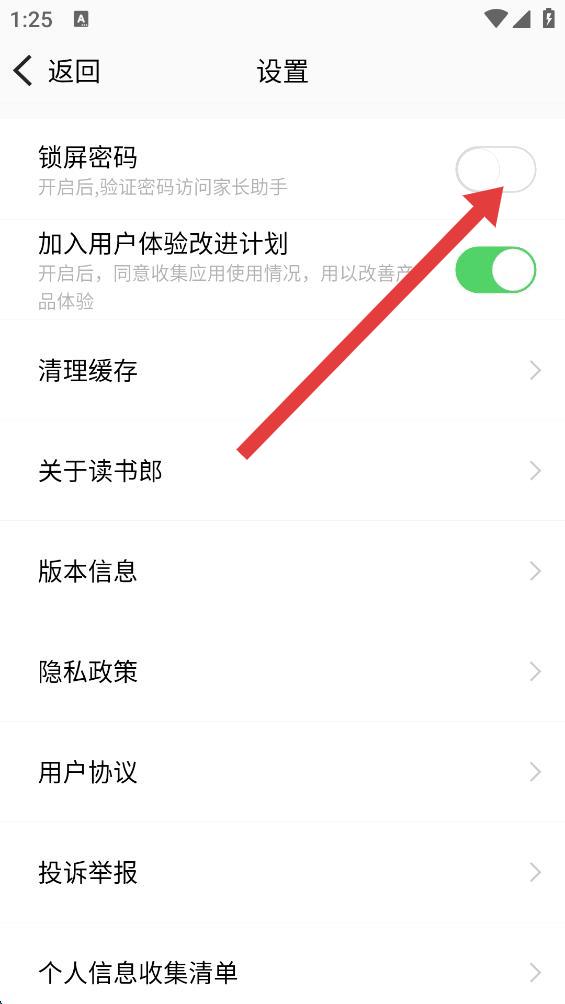 3、進(jìn)入設(shè)置頁面后,點(diǎn)擊鎖屏密碼右側(cè)的開關(guān)按鈕將其開啟。