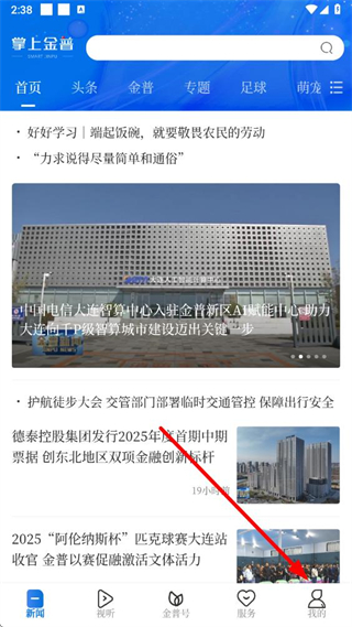 1、在掌上金普app新聞頁面點(diǎn)擊我的選項(xiàng),進(jìn)入個人頁面。