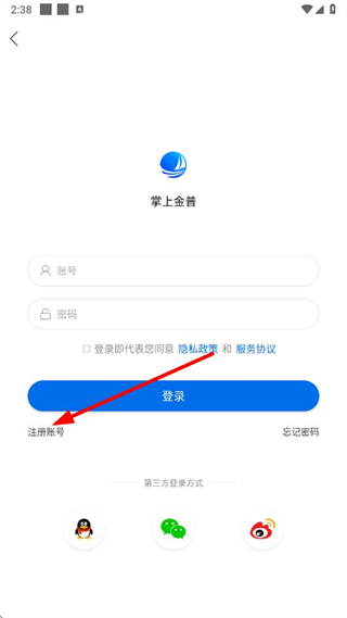 3、在登錄頁面點(diǎn)擊注冊賬號選項(xiàng),進(jìn)入注冊頁面。