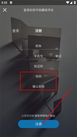 4、設(shè)置密碼并再次輸入密碼確認(rèn),點(diǎn)擊注冊(cè)即可完成注冊(cè)。