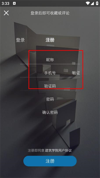 3、進(jìn)入注冊(cè)頁面后,輸入昵稱、手機(jī)號(hào)碼和收到的驗(yàn)證碼。