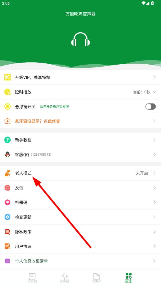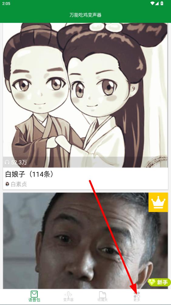1、打開萬能吃雞變聲器APP,點(diǎn)擊底部導(dǎo)航欄最右側(cè)更多選項(xiàng)。