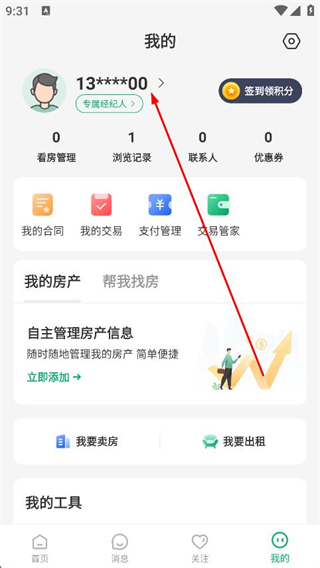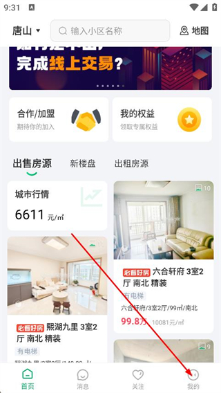 1、打開千家找房,點擊底部導航欄最右側(cè)我的選項。