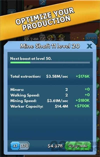 2、升級方案,我們最需要注意的是自己在進行升級人物的時候一定要看清楚人物的位置,這點是很關(guān)鍵的。偷懶的礦業(yè)大亨攻略中為玩家詳細(xì)的介紹我們需要關(guān)注的升級小技巧,了解這些以后我們就能順利的刷分了。