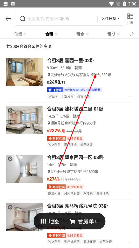 3、搜索結果出來后,瀏覽符合條件的房源列表,點擊感興趣的房源。