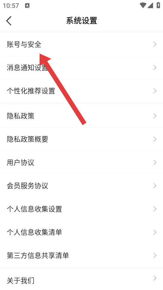 2、在系統(tǒng)設(shè)置頁面,點擊賬號與安全選項,進入賬號安全設(shè)置頁面。