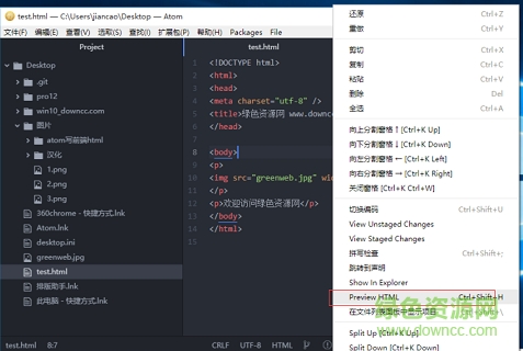 4.保存成功,在代碼文件右鍵,選擇preview html