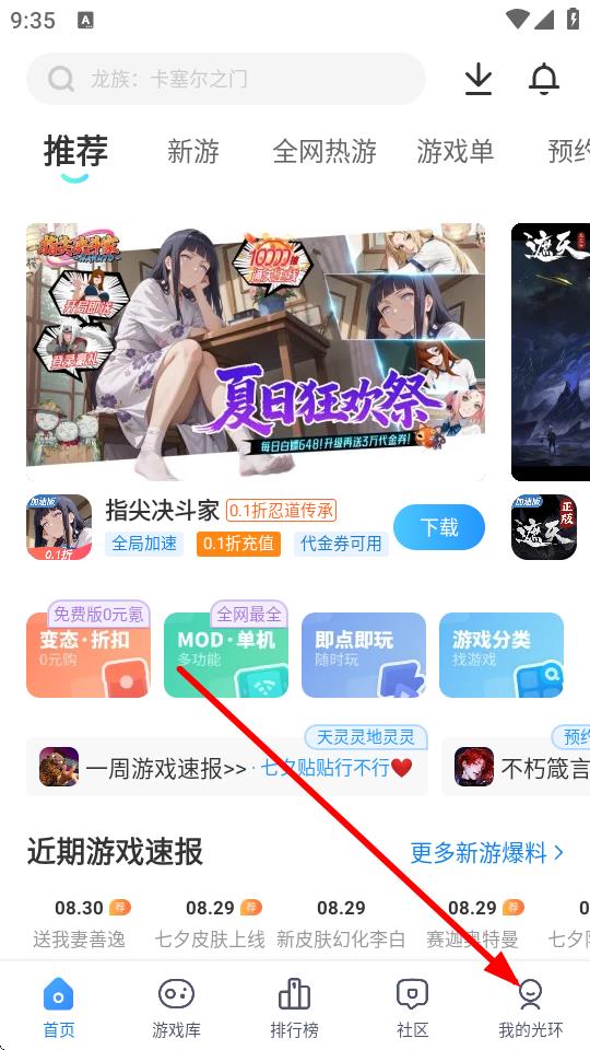 1、下載安裝好該應(yīng)用后點擊進去,進入頁面后找到我的光環(huán)選項(第一次使用需要登錄注冊);