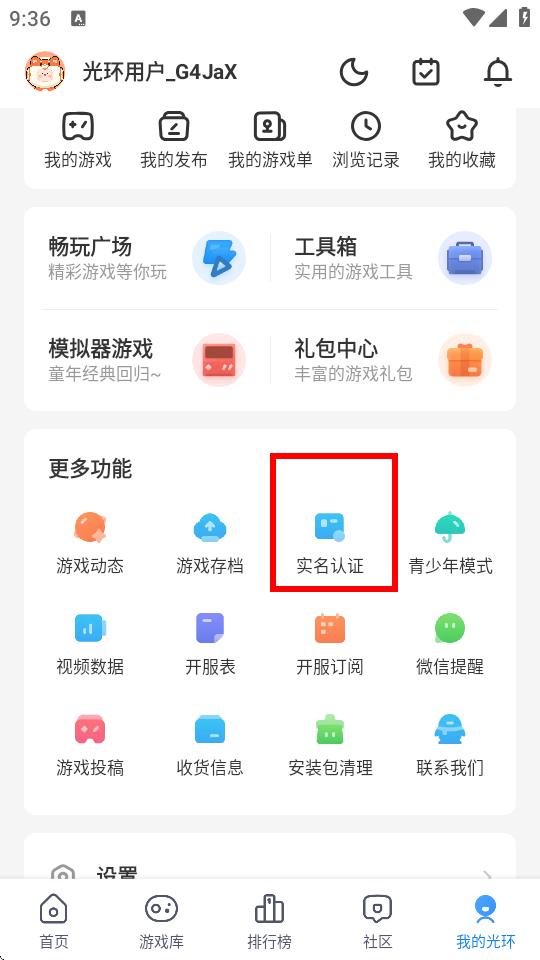 2、在個人界面中找到更多功能板塊,點擊其中的實名認證按鈕。