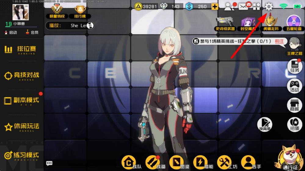 1、王牌戰(zhàn)士游戲主界面,在界面右上方能看到設置按鈕,由此可進入游戲設置相關界面等信息。