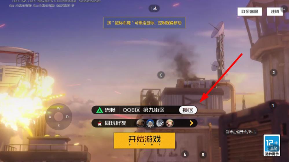 3、重新登錄到游戲初始界面,在開始游戲按鈕上方,會顯示當前所在區(qū)服信息,點擊旁邊的換區(qū)按鈕,在彈出的區(qū)服列表中,選擇想要轉入的區(qū)服,確認后即可完成轉區(qū)操作。